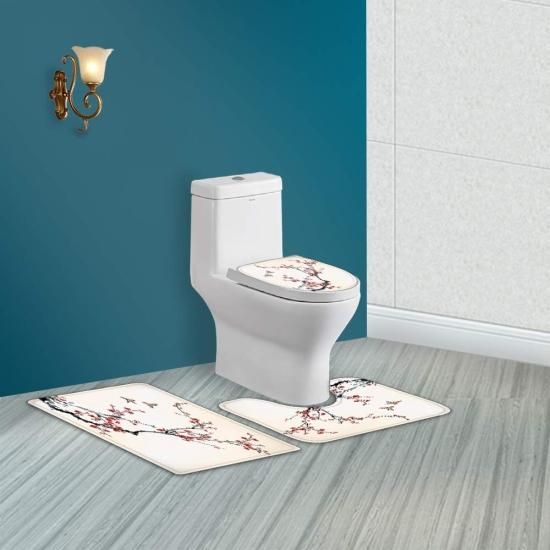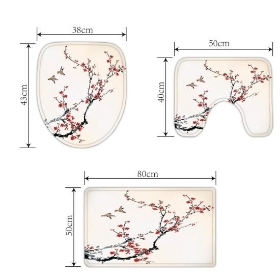 Cherry Blossom Tree Branch Bird Chinese Ink Painting Bathroom Rugs and Mats Sets