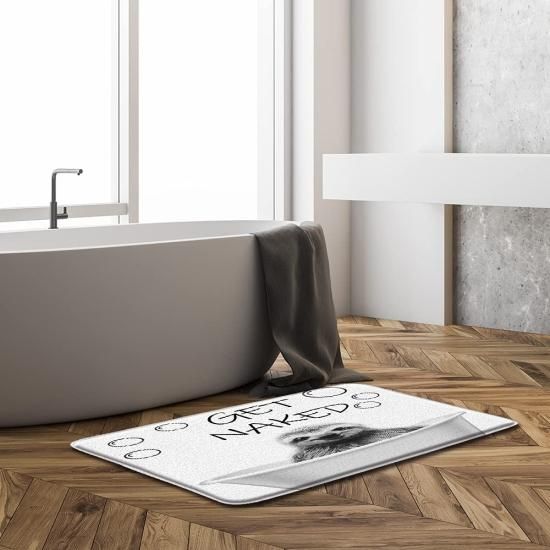 Sunhe Sloth Bath Mat Black and White Sloth Portrait Funny Quote Get Naked in Bat