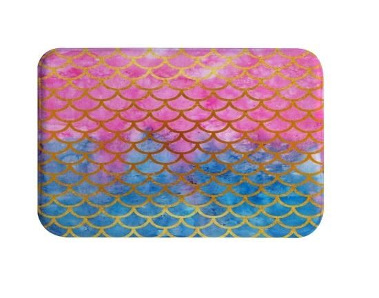 Mimihome マーメイドスケールバスラグ 水彩 魚テーマ バスマット フランネル スーパーソフト 吸収性 ノンスリップ バスマット バスルーム キッチン フ