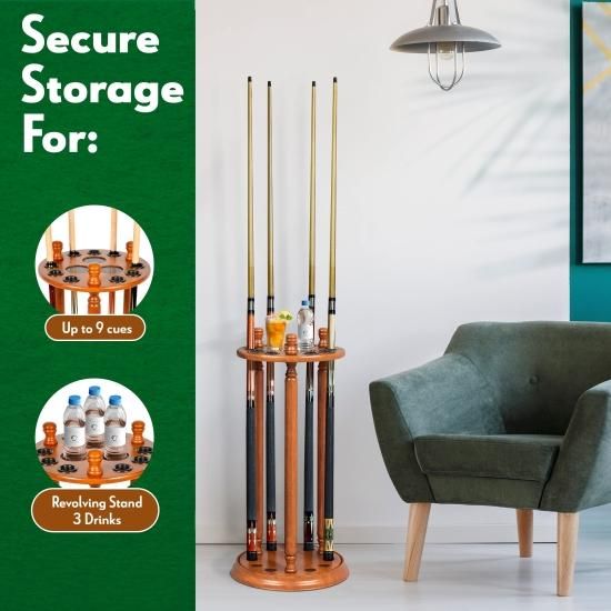 Cue Rack Only - Revolving 9 Pool - Billiard Stick Cue Rack - Stand Mahogany Fini