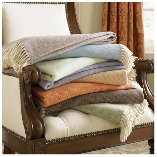 SFERRA セリンヘリンボーン コットン100% スローブランケット ライラック