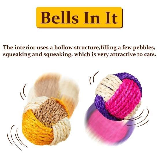 6 Pieces Cat Toy Ball Cat Sisal Ball Interactive Cat Ball Cat Rolling Ball Scrat
