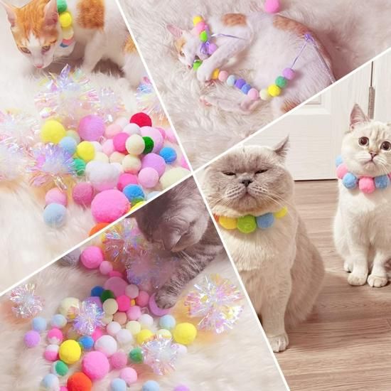 100 Pieces Cat Balls Cat Toys Cat Pom Pom Balls Cat Puff Balls Indoor Cats Inter
