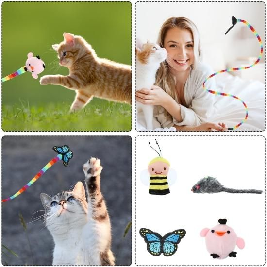 4 Pieces Interactive Cat Toy Cat Teaser Stick Toys Pet Charmer Wand Toy with Bee