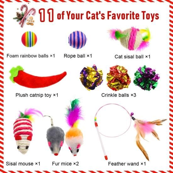 Yoochee Christmas Cat Toy Stocking Gift - 11 PCS Kitten Interactive Toys Set Ass