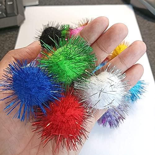 Mecari Cat Toys Balls Sparkle Pom Pom Fuzzy Balls for Cats 20 Pack