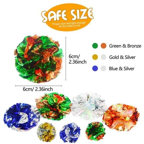 FadyDail 6 Pack Crinkle Balls for CatsLarge Size 2.36 in 3 Color Cat Crinkle Bal