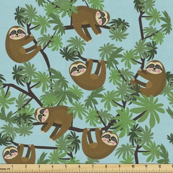 The Yard ザ・ヤード Lunarable アニマル生地 トロピカルジャングルでエキゾチックな木に眠る自然テーマ 室内装飾用生地 2ヤード キャラメルファ