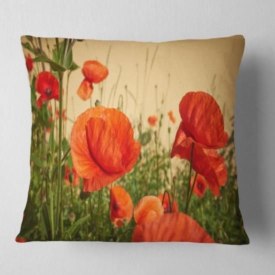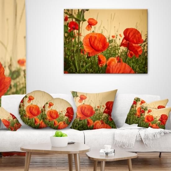 Designart Colorful Red Poppy Field' Flower Throw Living Room Sofa High Quality P