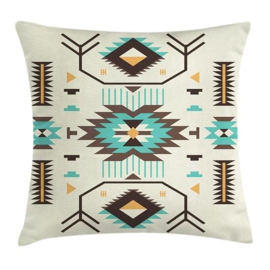 南西部スロー枕クッションカバーby Ambesonne、エスニックパターンデザイン古代アステカから文化with indigenousジグザグモチーフ、装飾正方形