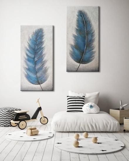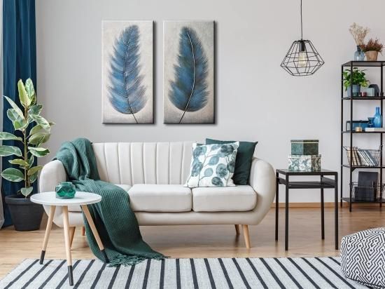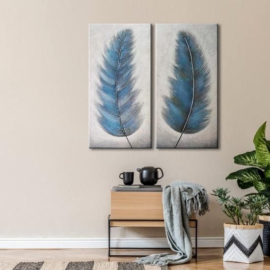 Wieco Art ブルーフェザー 抽象画 絵画 ウォールアート キャンバスに描かれた現代のキャンバスウォールアート リビングルーム ベッドルーム 壁装飾 現代
