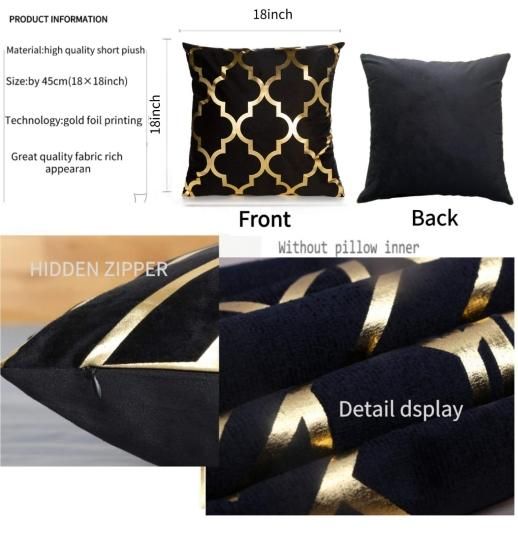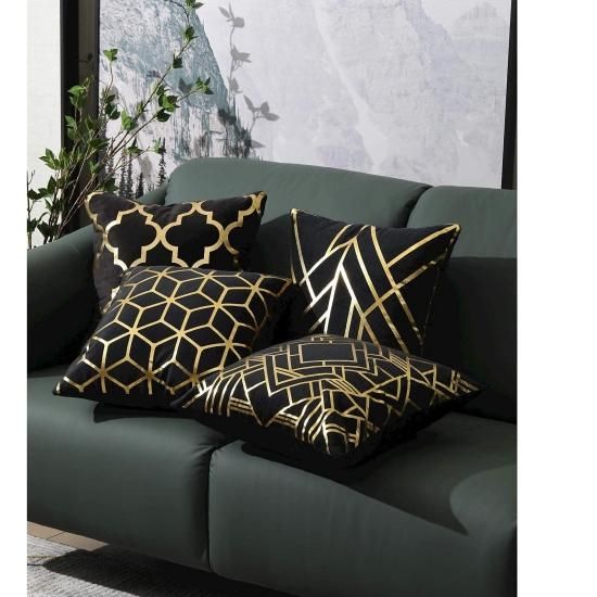 ゴールドスタンピング枕カバー 4点 家庭用シリーズ 装飾枕カバー 車 ソファ クッションカバー 18×18インチ 45×45cm 黒と白 ブラック