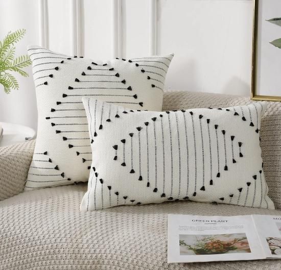 PANOD Knitted Boho Tufted Throw Pillow Covers with Tassel 12x20 inch Decorative