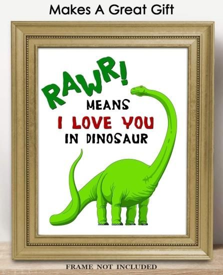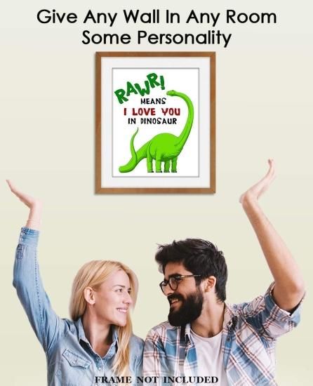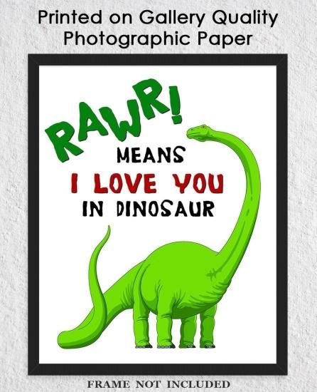 Dinosaur Poster Wall Art Prints Rawr Means I Love You In Dinosaur - 8x10 Unframe