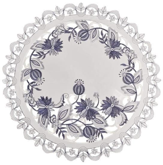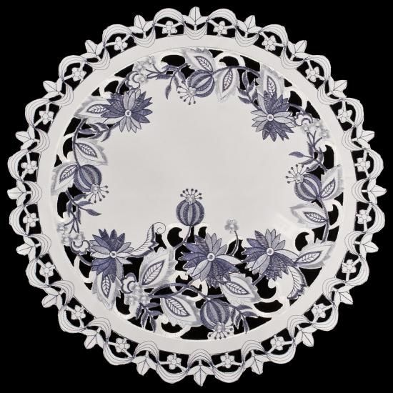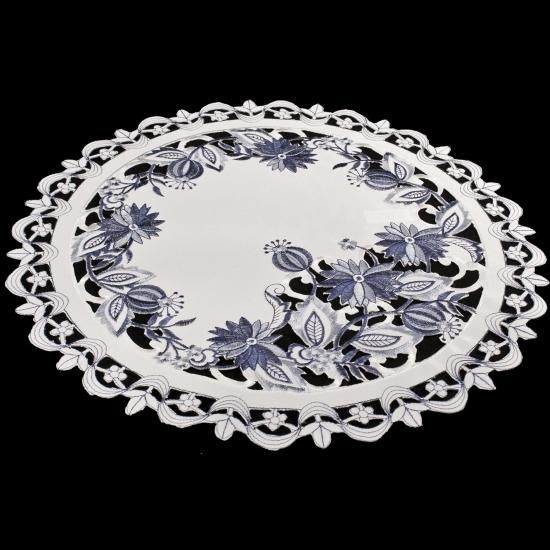 刺繍デルフトブルーオニオンフラワーPlace Mat Doily 16?ラウンド