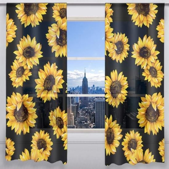 QH Beautiful Sunflower Black Window Sheer Curtains for Living Room Bedroom Kids