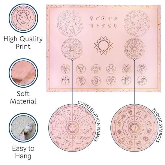 星座タペストリー 星座タペストリー 寝室用 占星術 部屋の装飾 ピンクのタペストリー 干支 占星術 タペストリー 大学寮の装飾