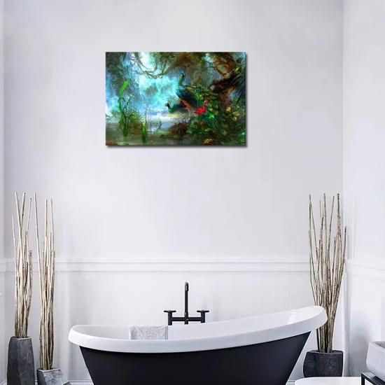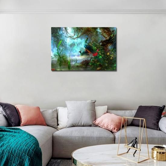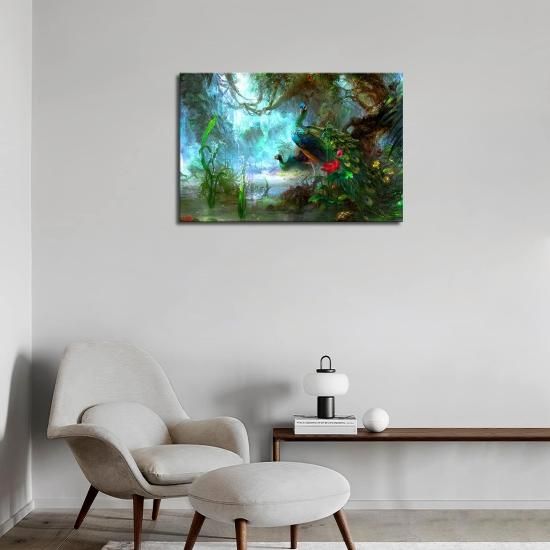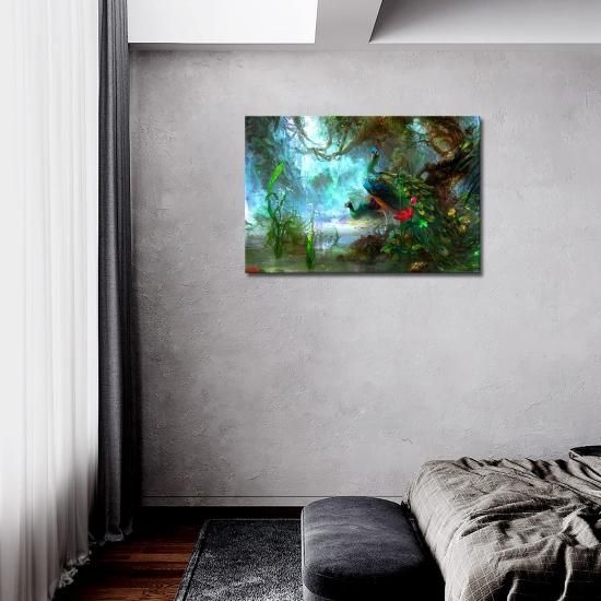 Two Peacocks Walk In Forest Beautiful Wall Art Painting The Picture Print On Can