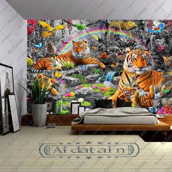 Aidatain The King of the Forest Tiger Tapestry Wall Hanging Waterfall Natural La