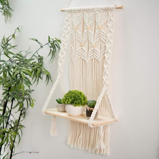OMOMIO Macrame Wall Hanging Shelf - Bohemian Wall Decor for Bedroom - Woven Rope