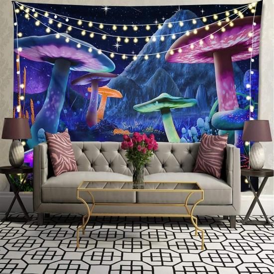 Wekoxo Mushroom Tapestry Starry Sky Tapestry Wall Tapestry Fantasy Plant Tapestr