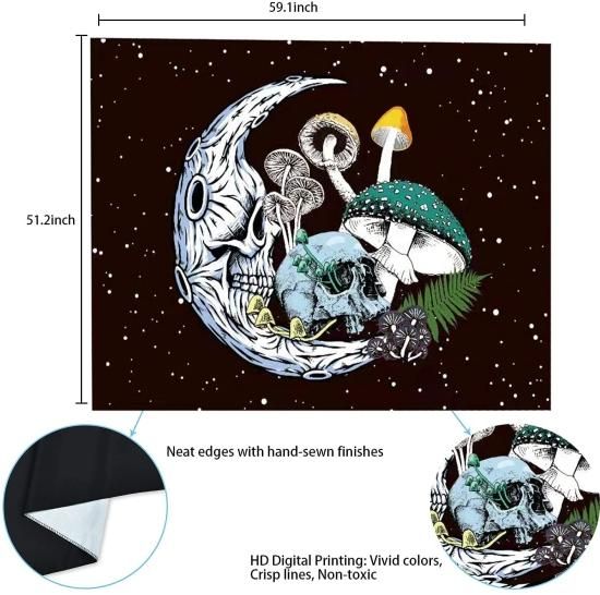 Black Tapestry Skull Moon Wall Tapestry Colorful Mushroom Tapestry Skeleton Tape