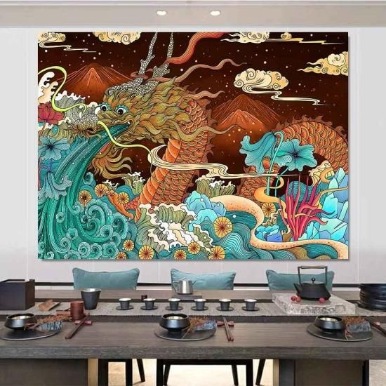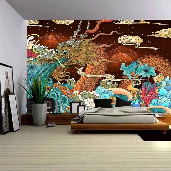 Aidatain Ukiyo-e Japanese Dragon Tapestry Big Ocean Waves Wall Hanging Underwate