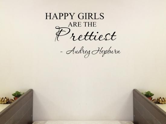 1 Black - Happy girls are the prettiest. Audrey Hepburn. Vinyl wall art Inspirat
