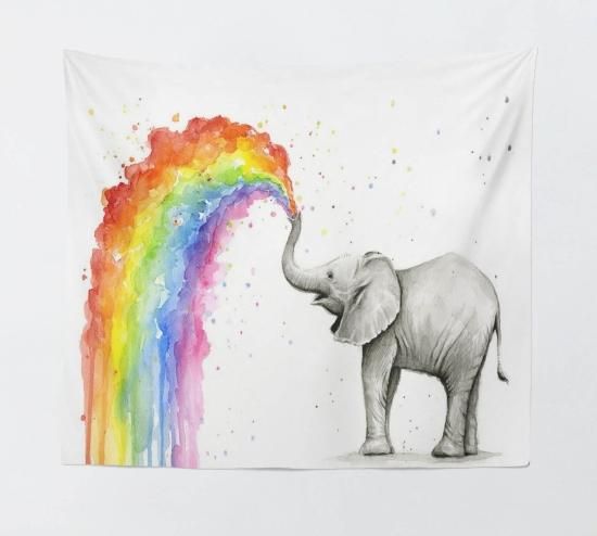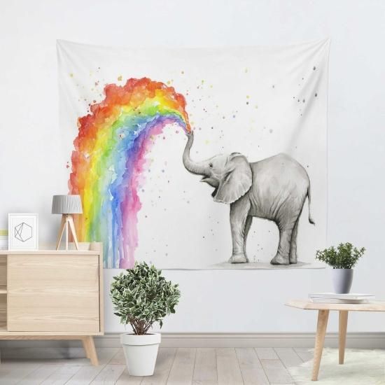 かわいい赤ちゃん象Sprayingレインボー水彩画アート印刷パターン水平タペストリー、壁掛けタペストリーのベッドルーム/リビングルーム/寮アクセサリー XL:5