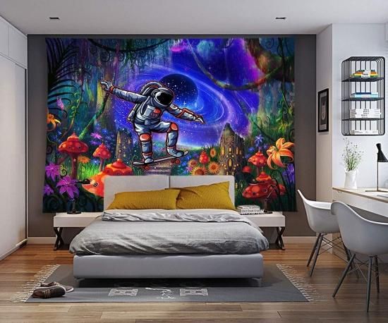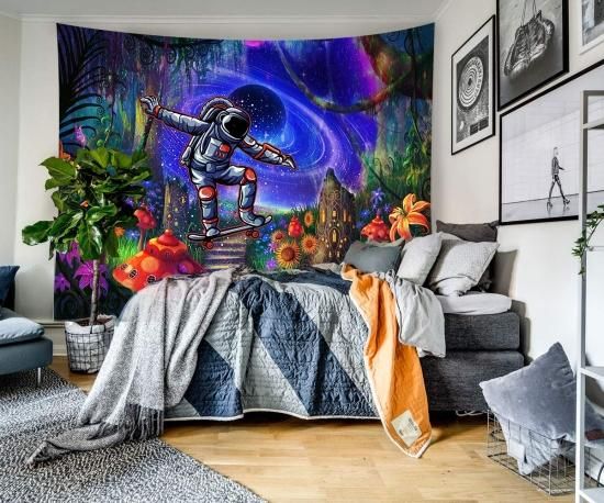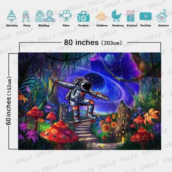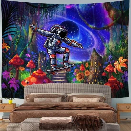 DBLLF Magic Forest Tapestry Cool Astronaut Skateboarding in The Wonderland Tapes
