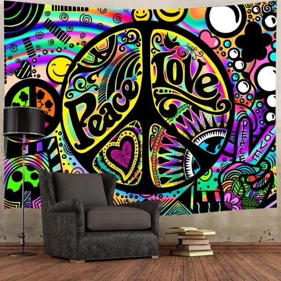 TYTYUU Peace Love Tapestry Cartoon Rainbow Happiness Tapestry Psychedelic Hippie
