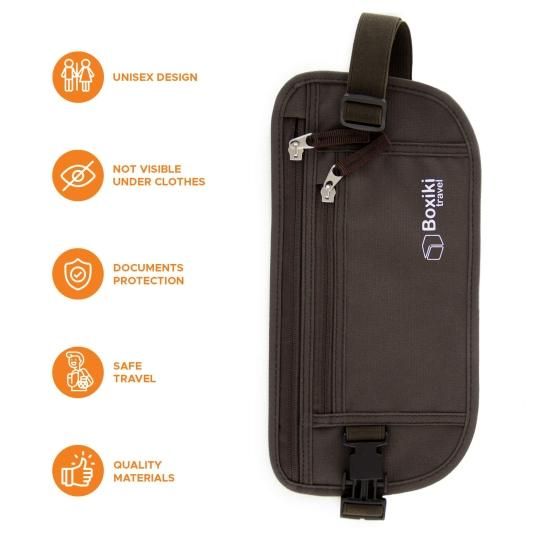 Boxiki Travel Money Belt - RFID Blocking Money Belt and Safe Waist Bag Secure Fa