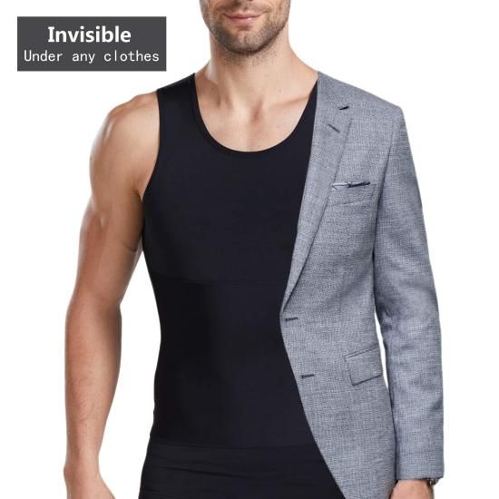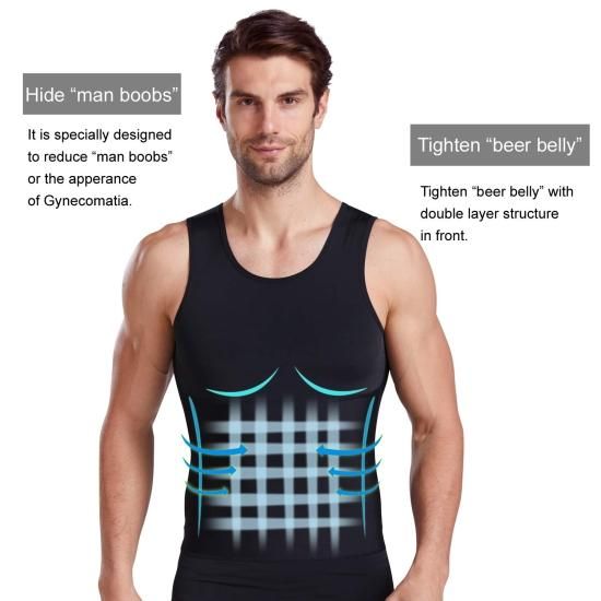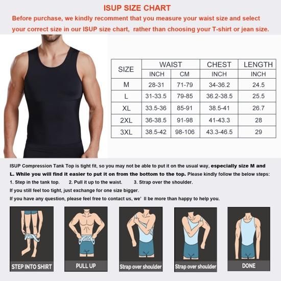 ISUP Mens Slimming Body Shaper Compression Tank Top Undershirt Shapewear Black