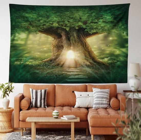 Mystic Fairy Tree of Life Enchanted Forest Mysticalライトデジタルプリントタペストリー壁吊り壁タペストリーリビ