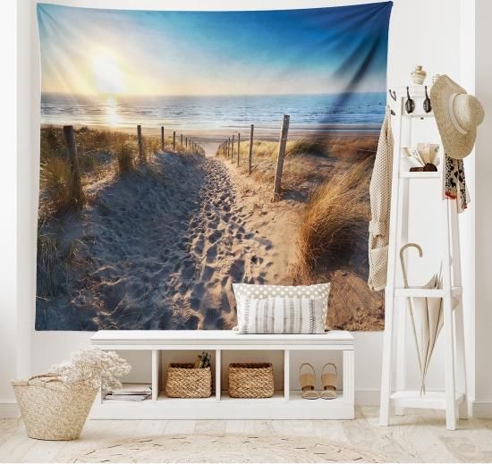 Ambesonne家装飾コレクション、寮寝室リビングルーム壁吊りタペストリー、マルチカラー 60 W By 80 L tap_11166_Beach_Pathw