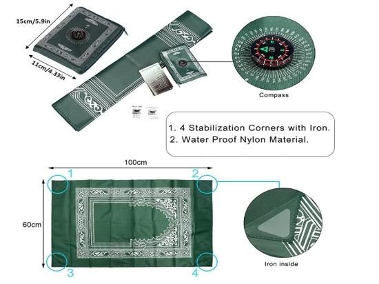 Anlising 1 Pieces Portable Travel Prayer Mat with Compass Waterproof Polyester P