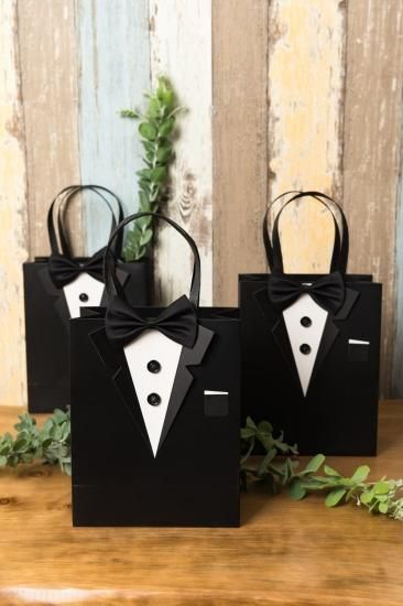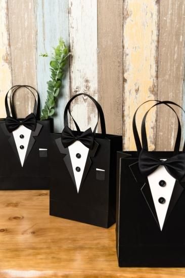 Gift Bags - Crisky Classic Black Tuxedo Gift Bags for Groomsman Father's Birthda