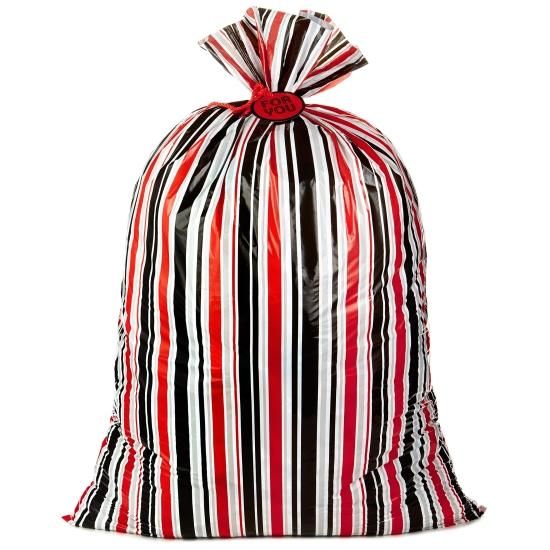 Hallmark 56インチ 特大サイズ 万能プラスチックギフトバッグ 赤、シルバー、黒のストライプ、あなた用 クリスマス、誕生日、父の日、ホリデーなど用