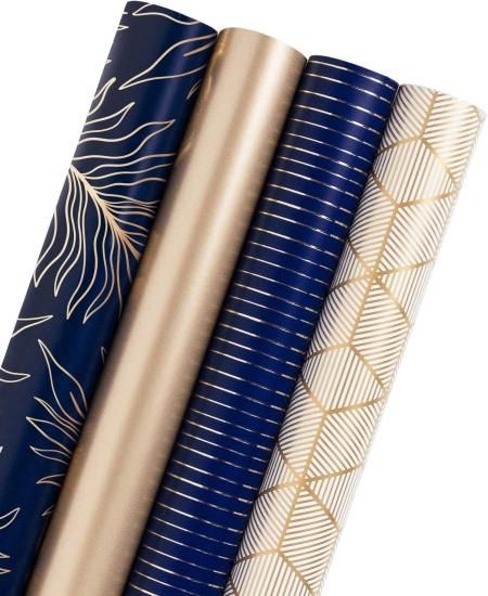 WRAPAHOLIC 包装紙 760mm×3m 4巻 - ブルーとゴールド