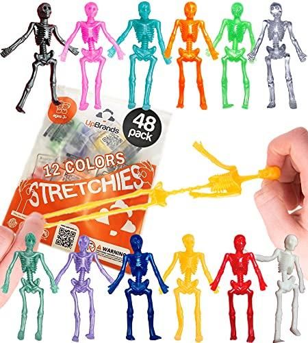 UpBrands 48 Stretchy Toys Party Favors for Kids Halloween Skeletons 12 Colors Bu