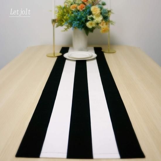 Letjolt ブラック ストライプ テーブルランナー 48''