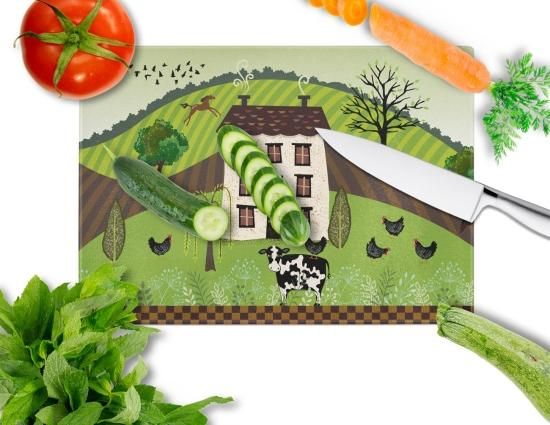 Caroline 's Treasures Folk Art Country HouseガラスカッティングボードL、マルチカラー