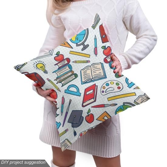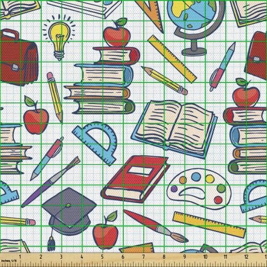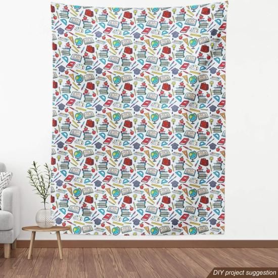 Ambesonne サイエンス生地 The Yard 小学生向け 地球儀ペイントとブラシブック 装飾生地 室内装飾やホームアクセントに 3ヤード ブルーレッド