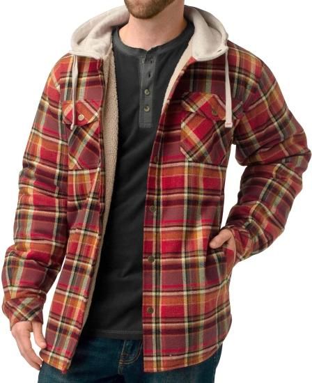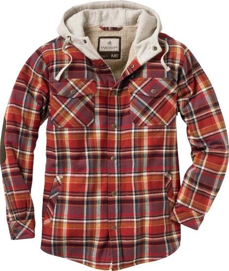 Legendary Whitetails メンズ サイズ Camp Night Berber 裏地付き フード付きフランネルシャツジャケット、カーディナルアロー