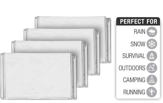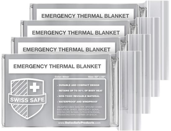 Swiss Safe Emergency Mylar Thermal Blankets 4-Pack + Bonus Signature Gold Foil S