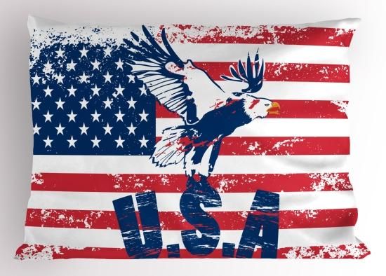 Ambesonne アメリカ合衆国 枕カバー グランジ柄 アメリカ国旗 イーグルとUSAプリント 装飾的 標準サイズ プリント枕カバー 30インチ x 20イン