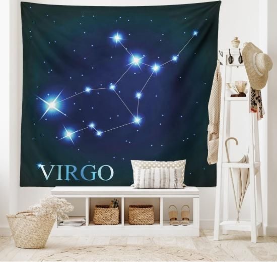 Virgoタペストリーby Ambesonne、Virgo Constellation線形のStars UniverseテーマGalactic図、壁吊りベッドル