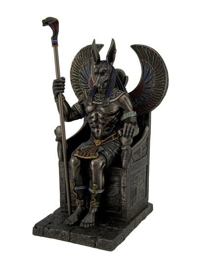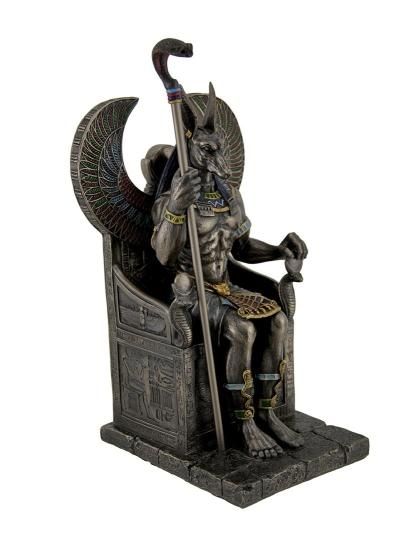 玉座に座る 古代エジプトの神 アヌビス神 彫像/Egyptian God Anubis Sitting in Throne Statue品