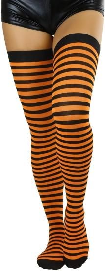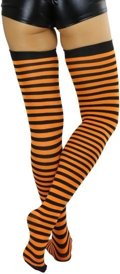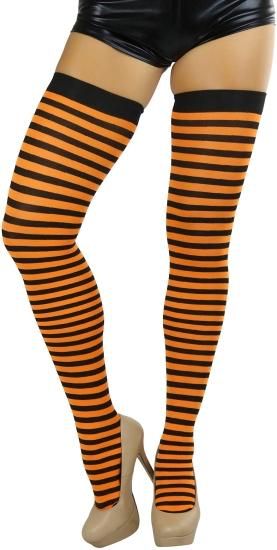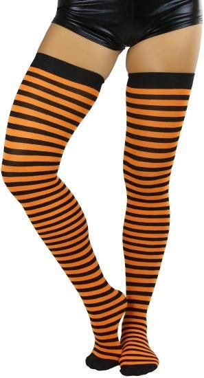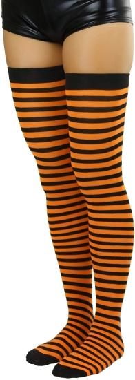 ToBeInStyle 婦人向け ストライプ柄 サイハイ丈 ワンサイズ、レギュラー ブラック/オレンジ