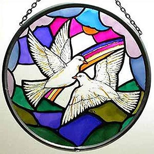 DecorativeハンドペイントガラスウィンドウRoundel in a平和鳩のデザイン。